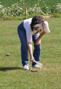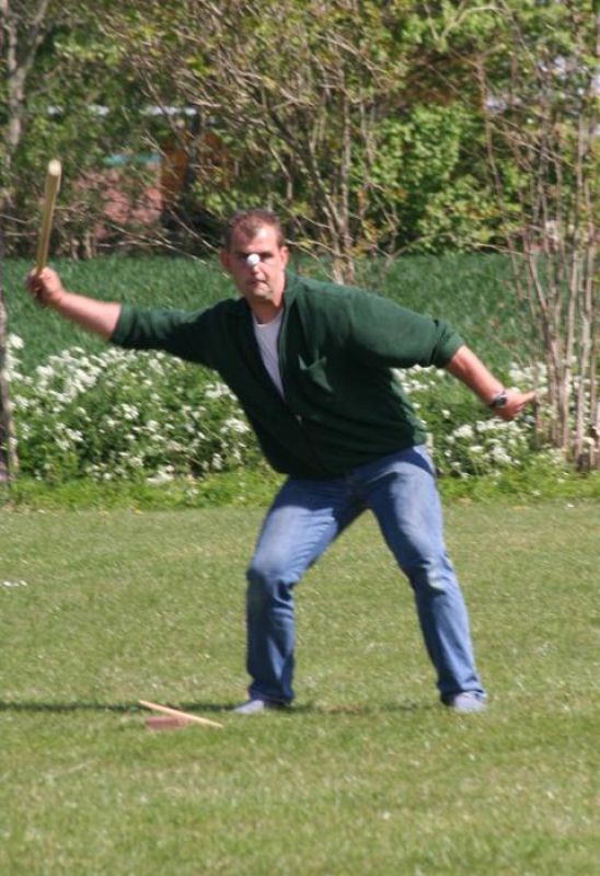 Het spel zelf is eenvoudig, maar vraagt behendigheid, timing en een beetje geluk. De kooi, een houten balletje, ligt op een kort houten latje dat rust op een platte steen. Met een stevige stok sla je tegen het uiteinde van het latje, waardoor de kooi omhoog springt. In één vloeiende beweging probeer je hem vervolgens zo ver mogelijk weg te slaan.